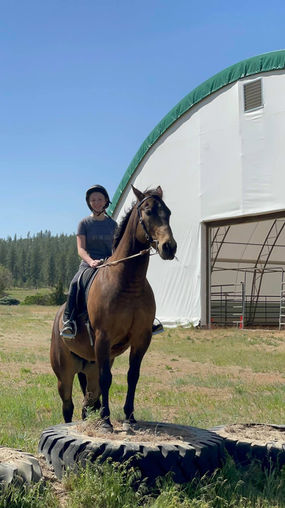 Bear was a trainer’s personal mount (owned by me) in 2020 and sold to one of my beginner clients as I didn’t have time for my own horses. Bear was used as a lesson horse for beginner to intermediate rider levels (western & english) when he was owned by me and did fantastic. Solid trail horse and will go over about any obstacle you point him at (tires, teeter totters, exc.) He LOVES water. Bear has a sorting and reining background, he was owned by a cow horse trainer before I purchased him.